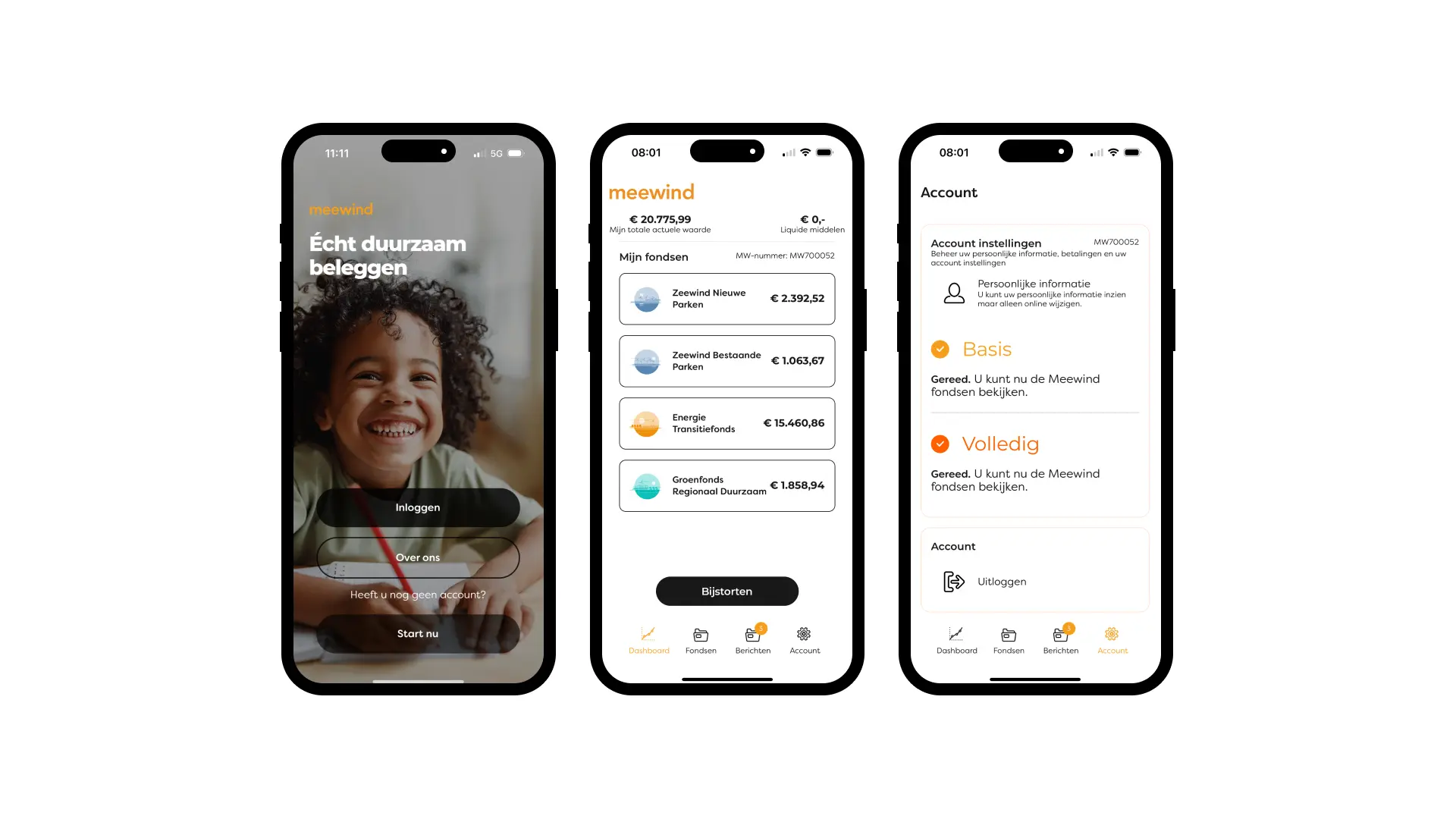 Aanvragen, beleggen, betalen. Alles wat je nodig hebt in één app. Met de Meewind app heb je meteen het overzicht van al je duurzame beleggingen, ben je met slimme alerts op de hoogte van de laatste ontwikkelingen en doe je supersnel betalingen!